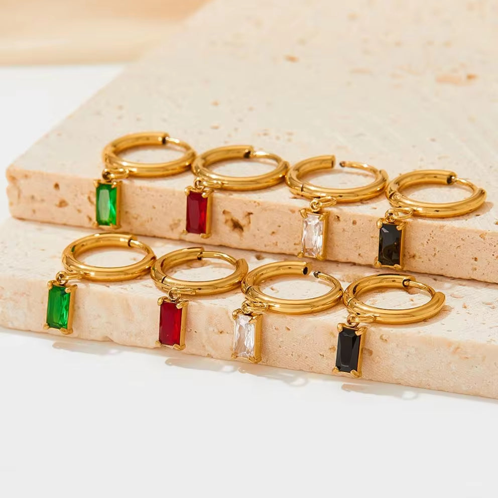 Exquisite 18K Gold Plated Stainless Steel Rectangle Zircon Drop Earrings Bling Crystal Rectangle Earring for Women