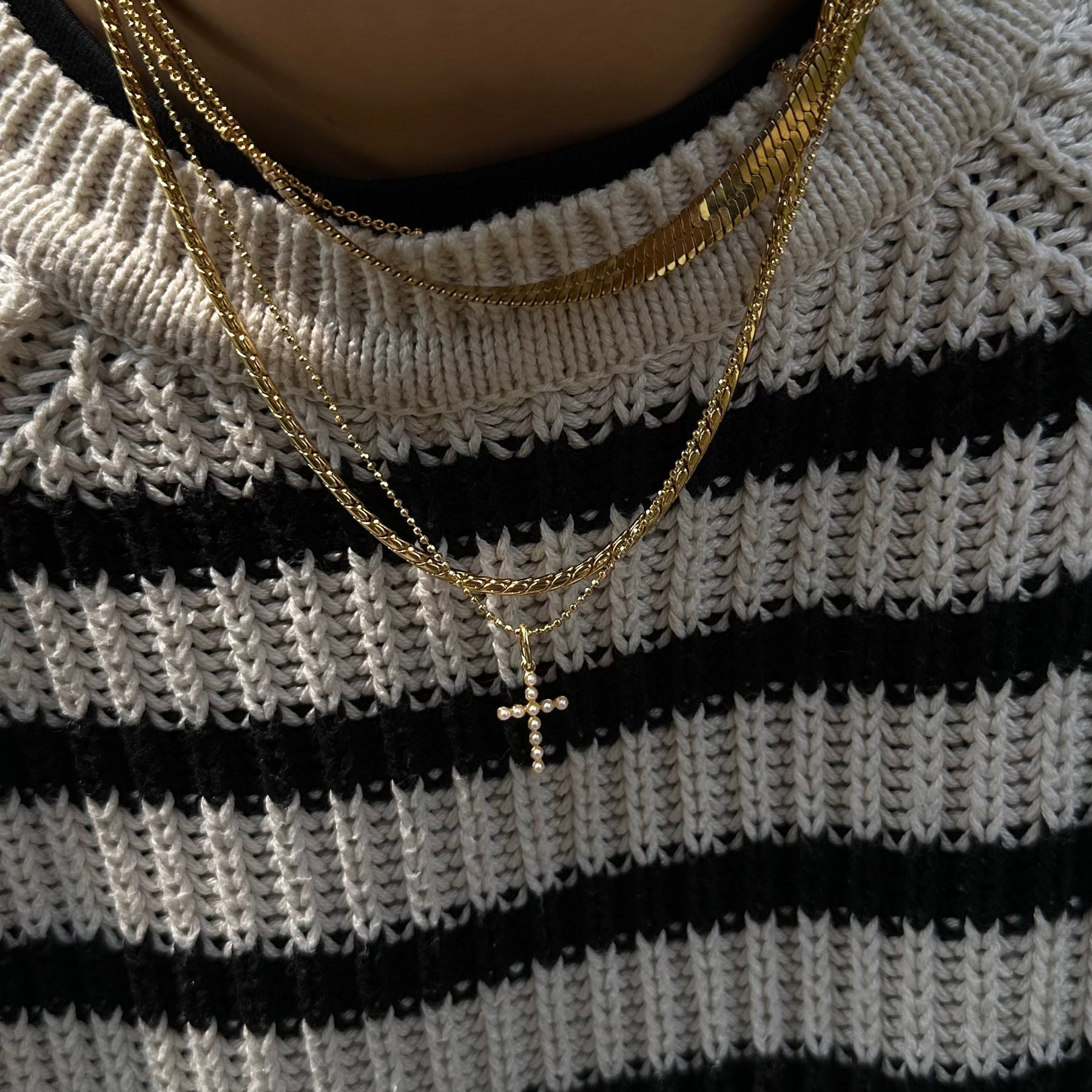 It’s time to add this heavenly necklace to your collection! With its pearly cross on a dainty chain, this stunning necklace is the perfect touch of classy for any fit. Wear it alone, or pair it with the matching Heavenly Hour Earrings to complete the set!