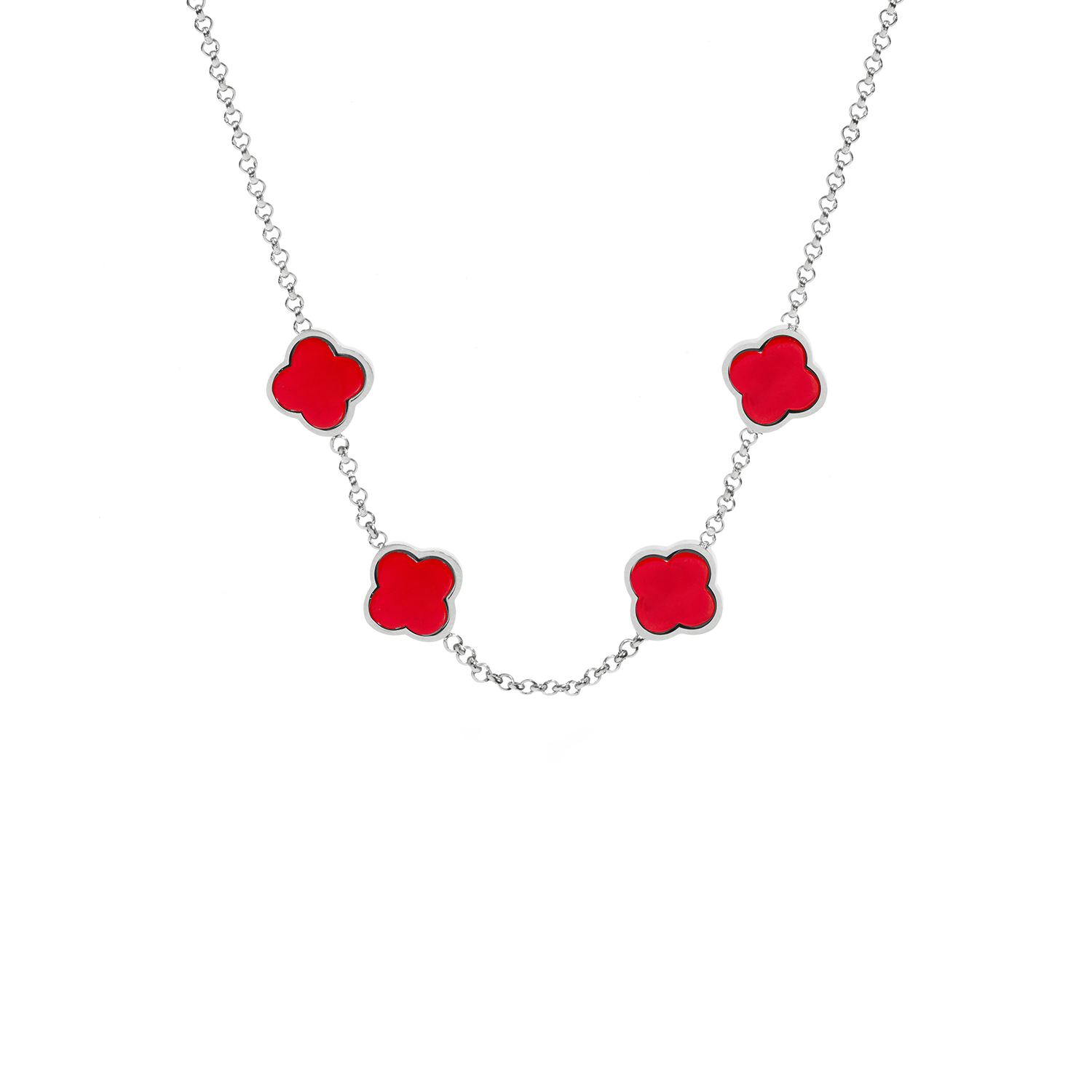 Red Custom Clover Name Necklace (Silver)