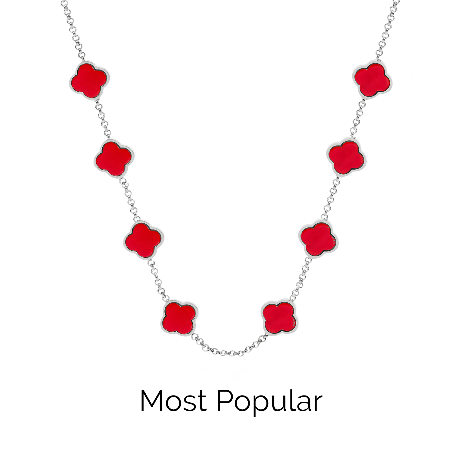 Add a pop of red to your favorite collection. Our bestselling Clover Name Necklace now comes in a glossy crimson shade, bringing a splash of romance to your lucky stack. Personalize each clover with initials to make it truly yours – or the perfect gift for someone special.