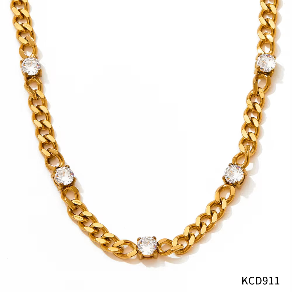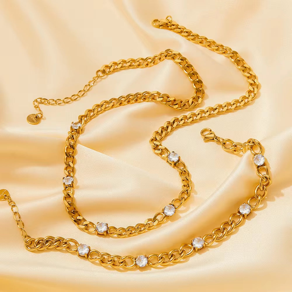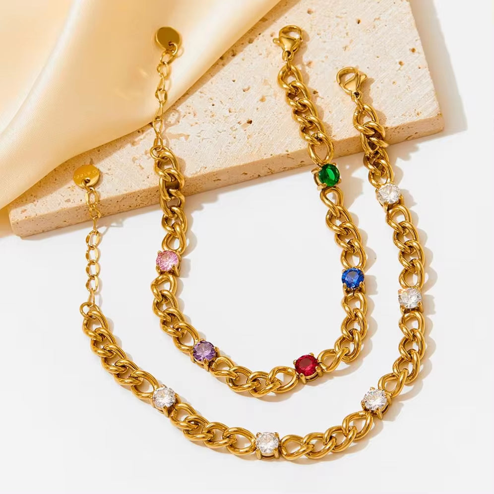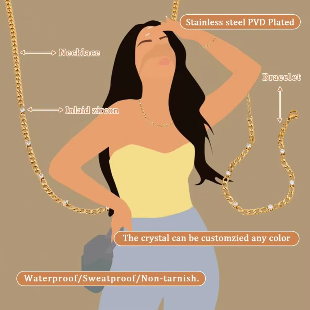 Exquisite Cubic Zirconia Stainless Steel Rainbow Cz Necklace Bracelet for Women Waterproof Fashion Jewelry Set