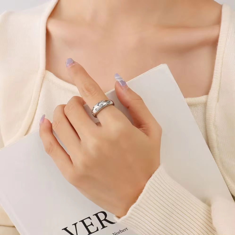 Fashion Gypsophila Star Zircon Stainless Steel 18K Gold Jewelry Rings