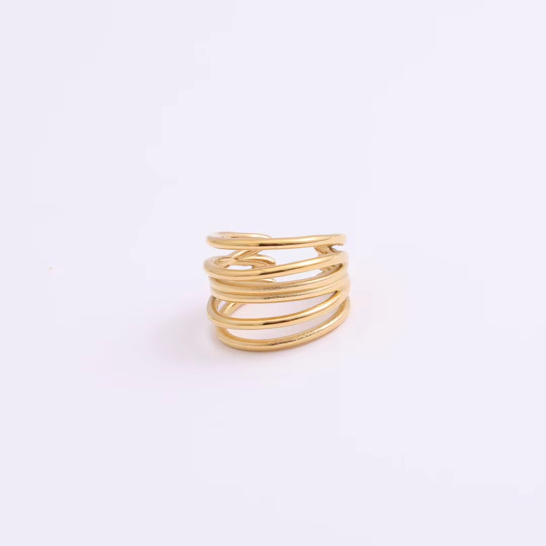 Hot Sale Women Fashion Minimalist Design High Quality Jewelry 18K Gold Plated Stainless Steel Stacking Multi Layers Ring