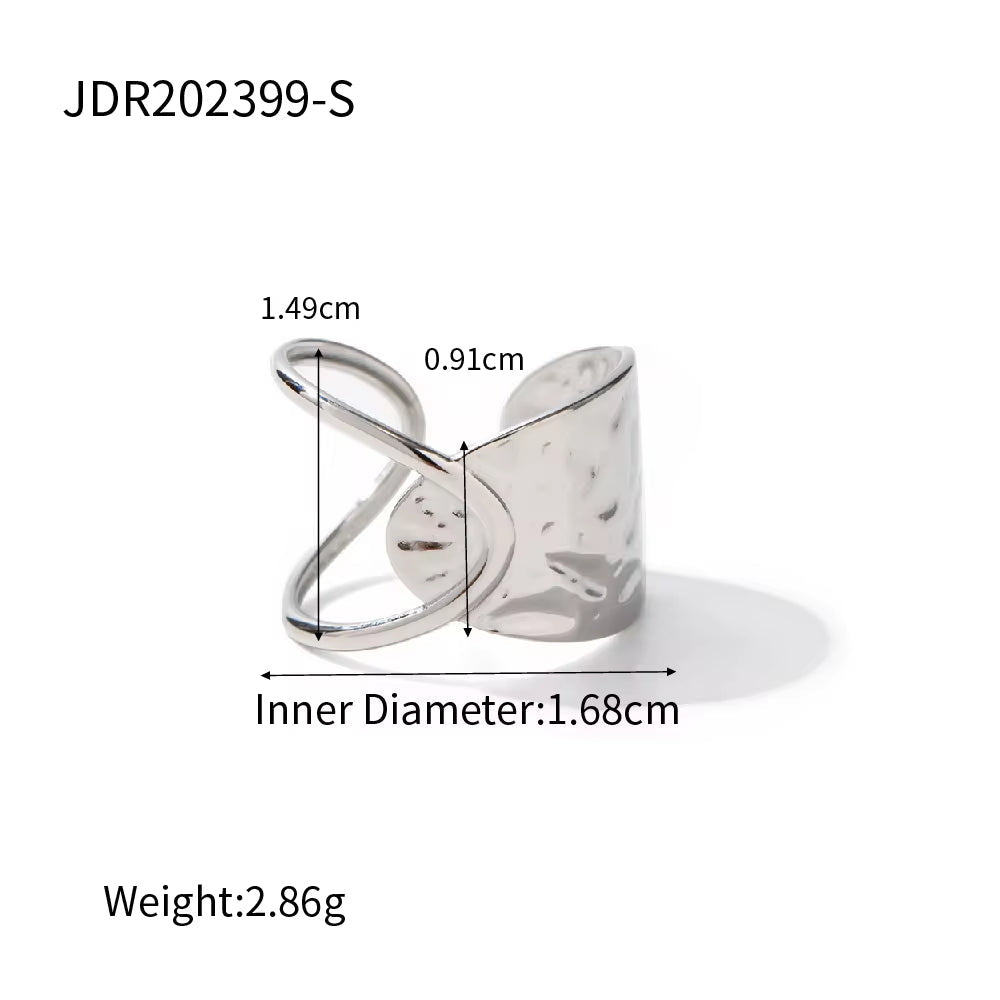 Simple Metally 18K PVD Gold Plated Stainless Steel Multi Layer Geometric Cross Open Adjustable Rings for Women
