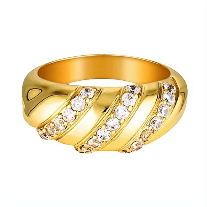Trendy Enamel Jewelry Stainless Steel 18K Gold Plated Chunky Black Gem Ring Vintage Black Enamel Dome Ring